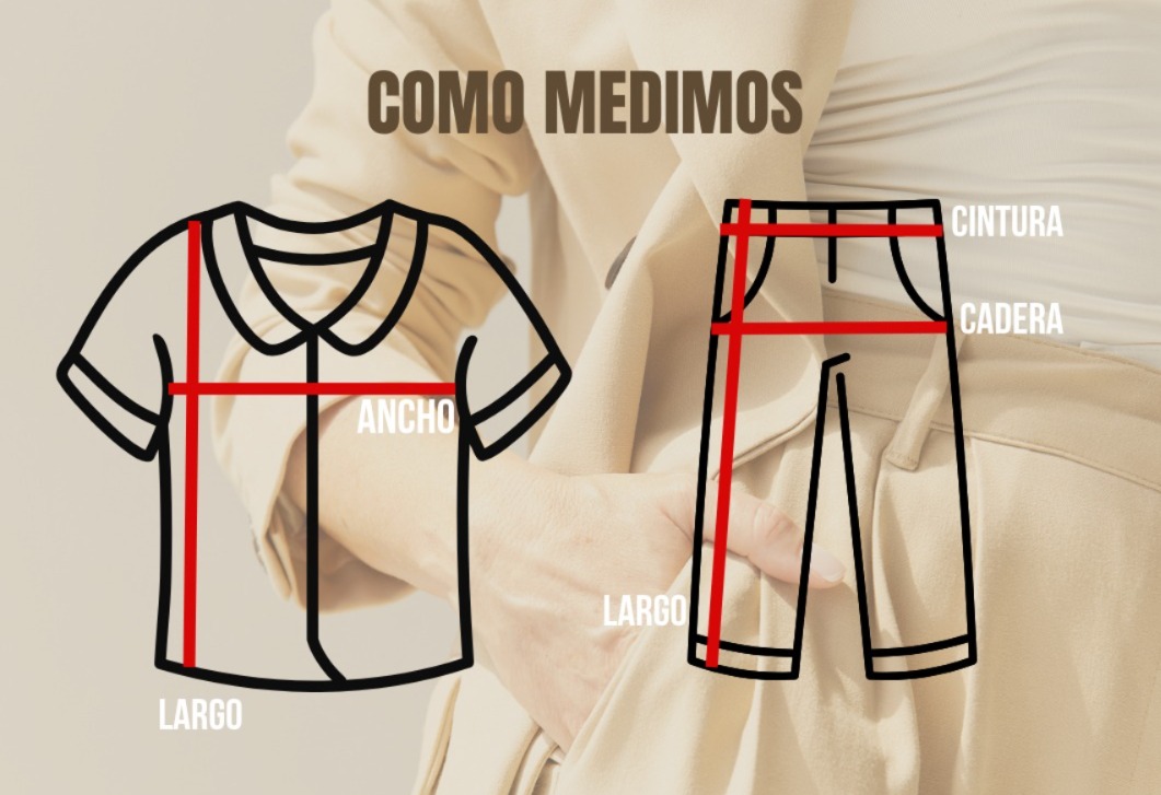 Medidas tomadas de forma plana sobre la prenda cerrada .